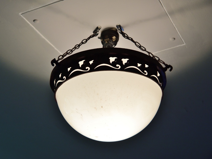 居間の照明をよく見ると日本らしい浜千鳥の文様が施されています。洋館でありながら和の趣をところどころに取り入れているのが心憎いですね。