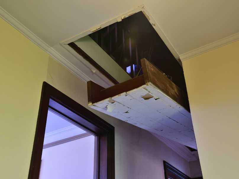 なんと天井から階段が現れました。昭和初期の建築にこのような仕掛けがあるなんて驚きです。スタッフの方に伺うと、普段一般公開はされていませんが、今も立派に現役として活用されているとのこと。