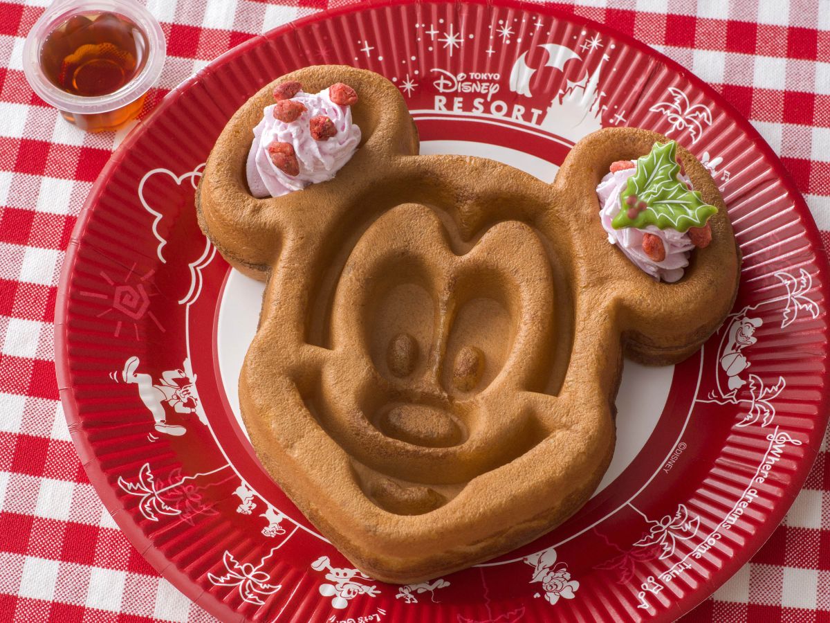 クリスマスバージョンのミッキーワッフルが再登場! フリーズドライのストロベリーがサクサクとした食感と甘酸っぱさをプラス。ヒイラギの形のチョコでクリスマスらしいデコレーションになっているのもポイントです。+200円でバニラアイスクリーム付きにするのもおすすめ!