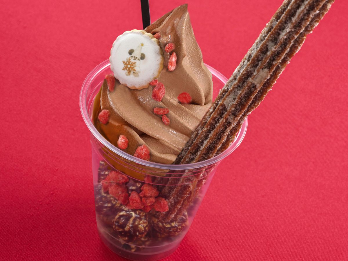 濃厚なチョコレート味のソフトクリームに、チョココーティングされたポップコーン、チョコレートチュロスと、さまざまなチョコの味を一度に楽しめる、チョコ好き必食のデザートメニュー。