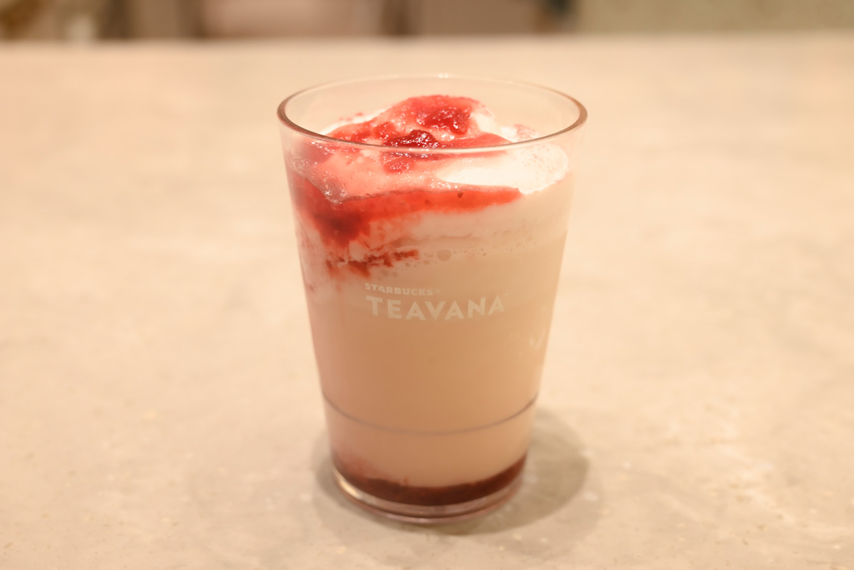 ホットもアイスも、それぞれのよさがあって甲乙つけがたいおいしさでした! ちなみに「レッド ラズベリー & ジョイフルメドレー ティー フラペチーノ®」よりも甘さが控えめで、ティーをより深く味わいたい方はこちらがオススメです!
