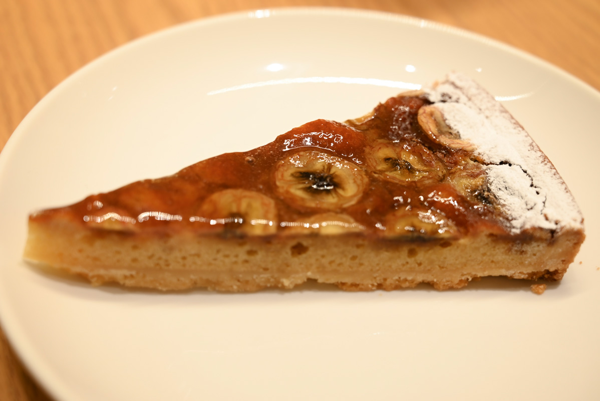 「トルタ ディ バナナ」は、自然な甘さのバナナにキャラメリゼのほろ苦さ、メープルシュガーのコクが重なった香ばしいバナナタルト。ひと口ごとにしっとりじゅわっとしたおいしさが広がる、奥行きを感じる味わいです。