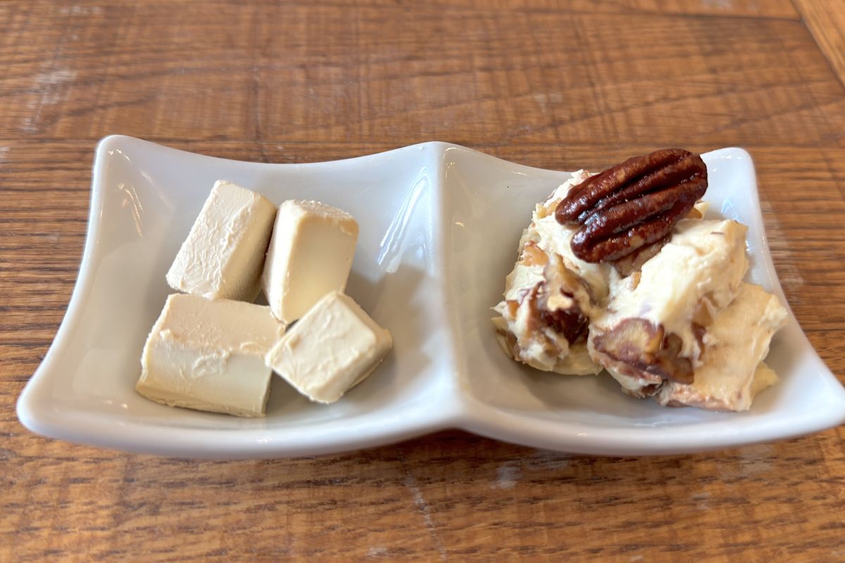 クリームチーズのまろやかな風味や酸味、ナッツのコクと香ばしさ、メープルシロップのやさしい甘さが調和した、デザートのようなチーズです。