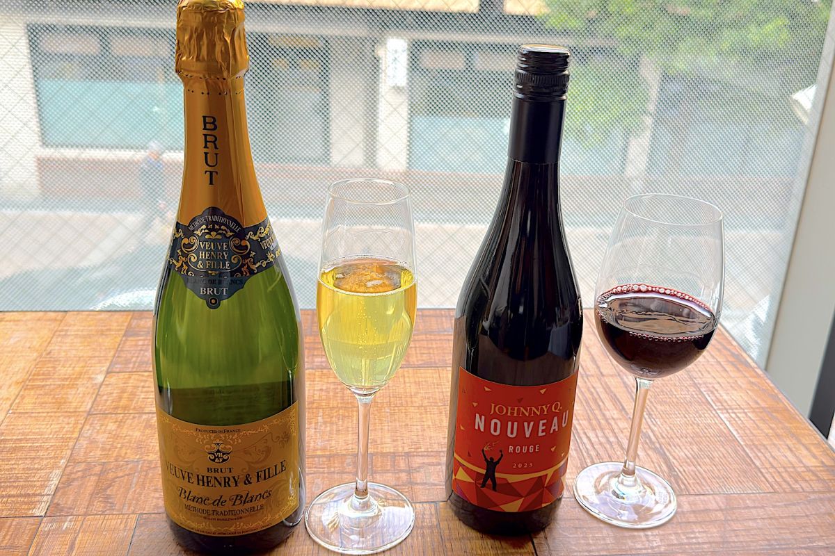 「成城石井 クリームチーズたまり醤油漬」と合わせたいのはフランス産の辛口スパークリングワイン「ヴーヴ アンリ ブリュット」750ml・2079円(写真左)。