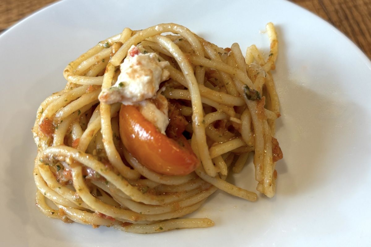 メニュー開発者のおすすめの食べ方は、トッピングされているリコッタチーズを、徐々にパスタに絡める食べ方なのだとか。