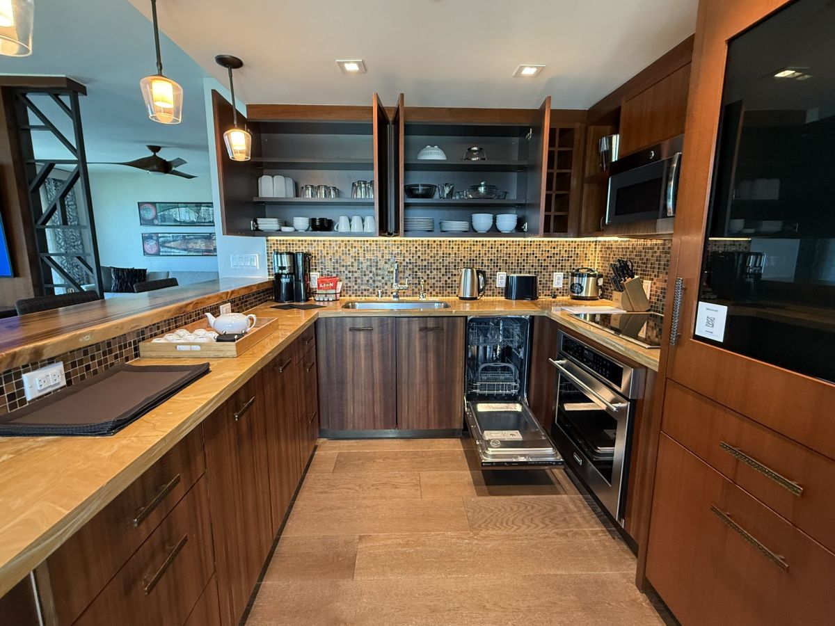 「ザ・グランドアイランダー・ヒルトングランドバケーションズクラブ」では、全室にフルキッチンが完備されており、IHコンロ、オーブンレンジ、炊飯器、コーヒーメーカー、食器洗浄機、調理器具、食器類などが揃っています。