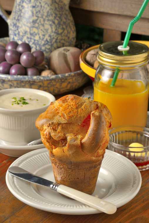 もうひとつの看板メニューが、ポップオーバーとカップスープ800円。こちらもアメリカのクラシカルな朝食メニュー。シュー生地のようなパンですが、口当たりが軽く、オリジナルジャムやバターの風味を引き立ててくれます。スープに浸して食べるのも、おいしいですよ!