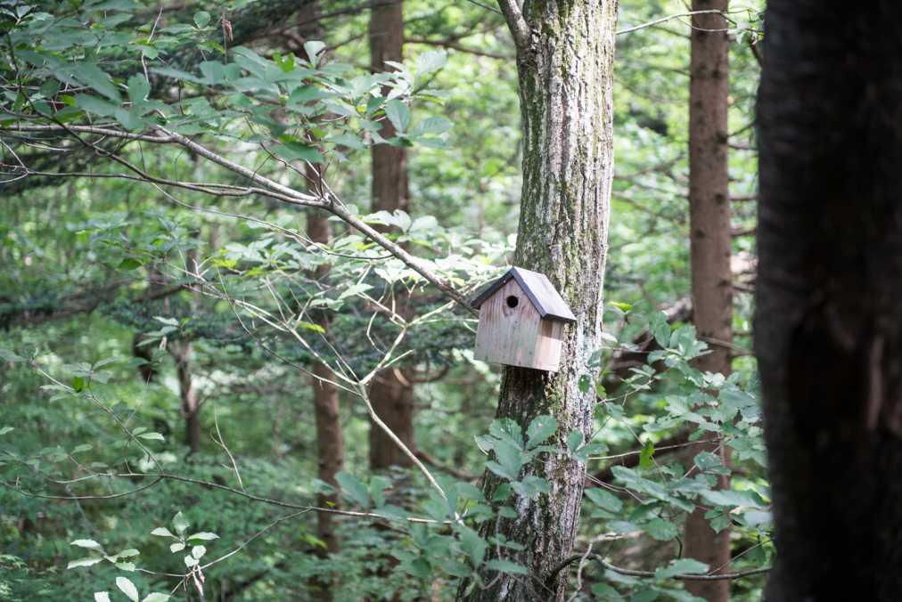食事の後は、のんびりとさんぽを楽しむのも「キャボットコーヴ」ならではのお楽しみ。お店の周りの木々をよく見ると、小鳥のための木箱も。