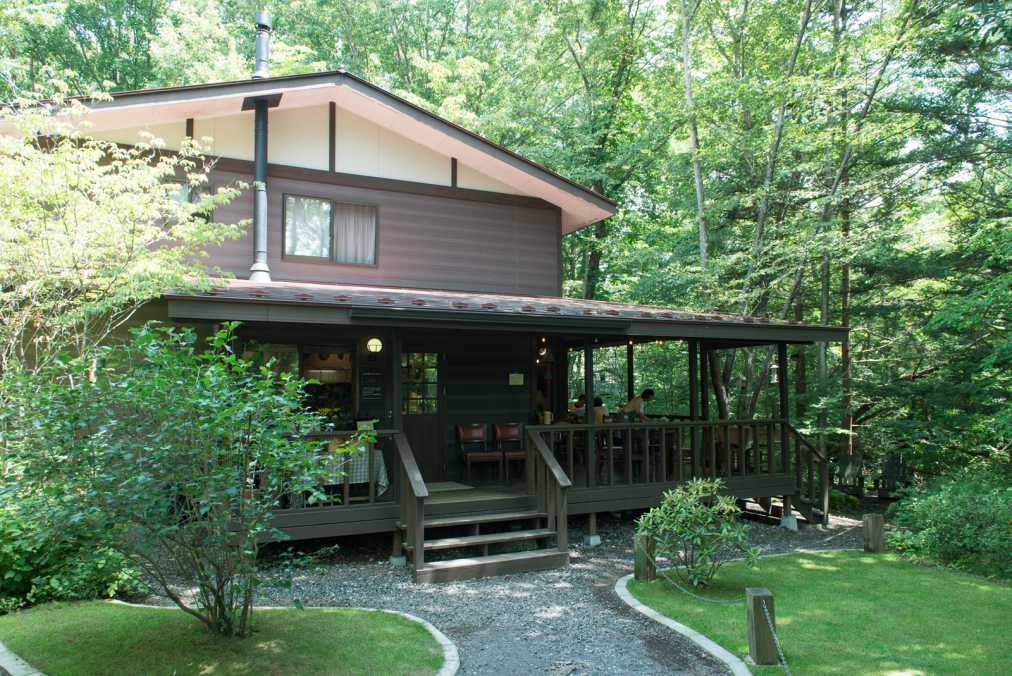 軽井沢郊外の森にたたずむ「キャボットコーヴ」。観光客だけでなく、別荘族からも愛されている朝食専門カフェです。見てください、周りはぐるり雑木林。これでもかとマイナスイオンが降り注ぐ立地です。