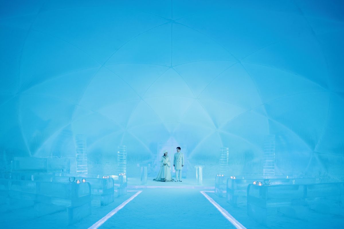 教会のオープン期間中は、新郎新婦や参列者以外も見学が可能。氷の街にたたずむ幻想的な冬の教会を体験できます。