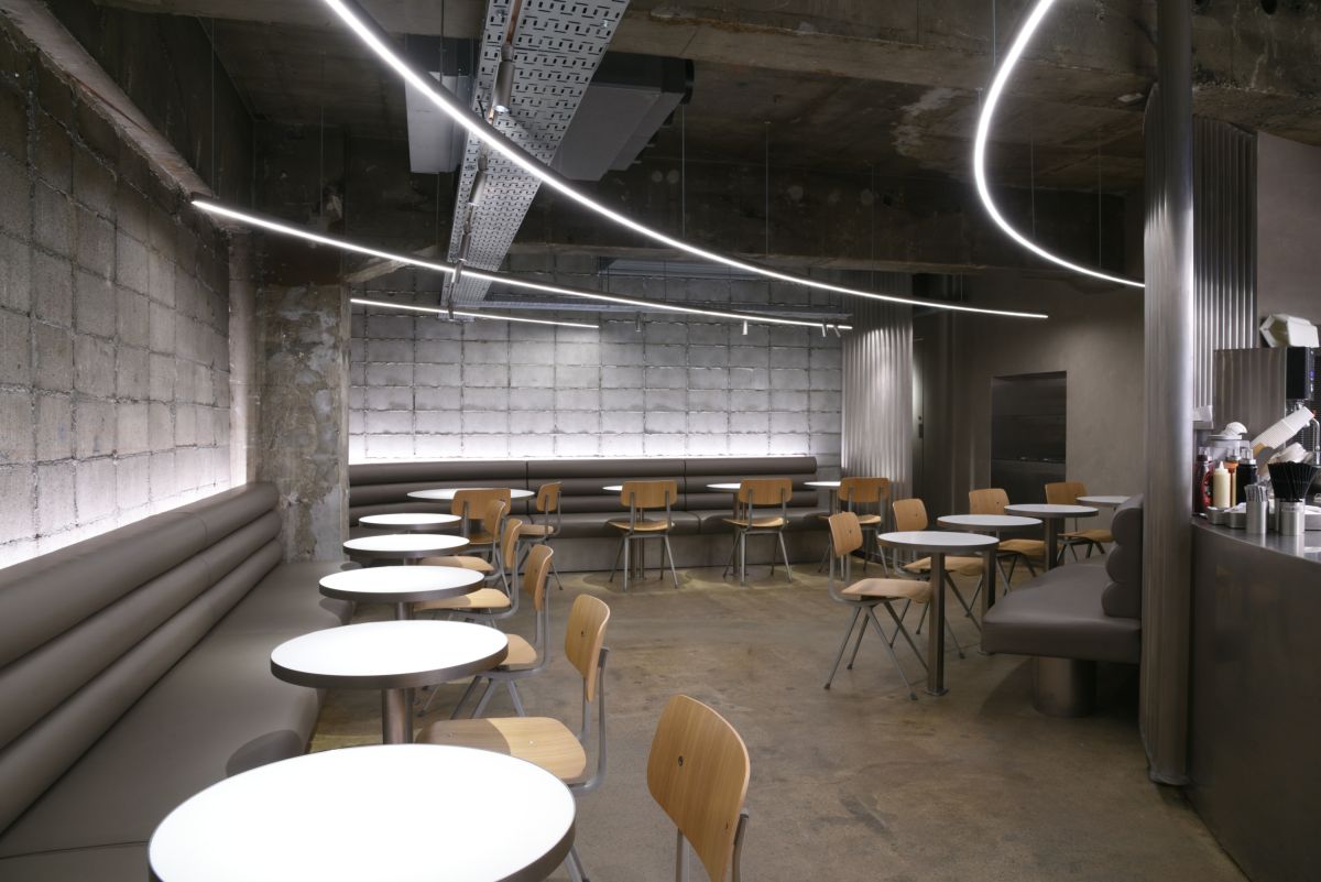 京都店の店内は、京都の街並みや伝統を感じさせる和のイメージとは真逆に、“スペイシー”をテーマにした近未来的な空間。光沢のあるステンレスやシャープな照明により、まるで宇宙ステーションのような世界観が広がります。