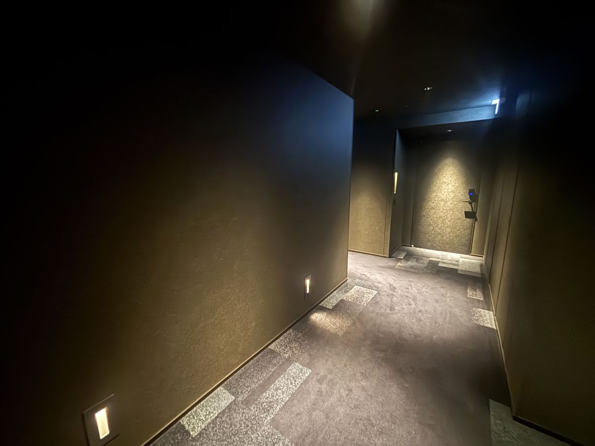 チェックインをしたら、専用エレベーターを使って客室へ。あえて照明が抑えられた廊下も、とても雰囲気があって素敵です。