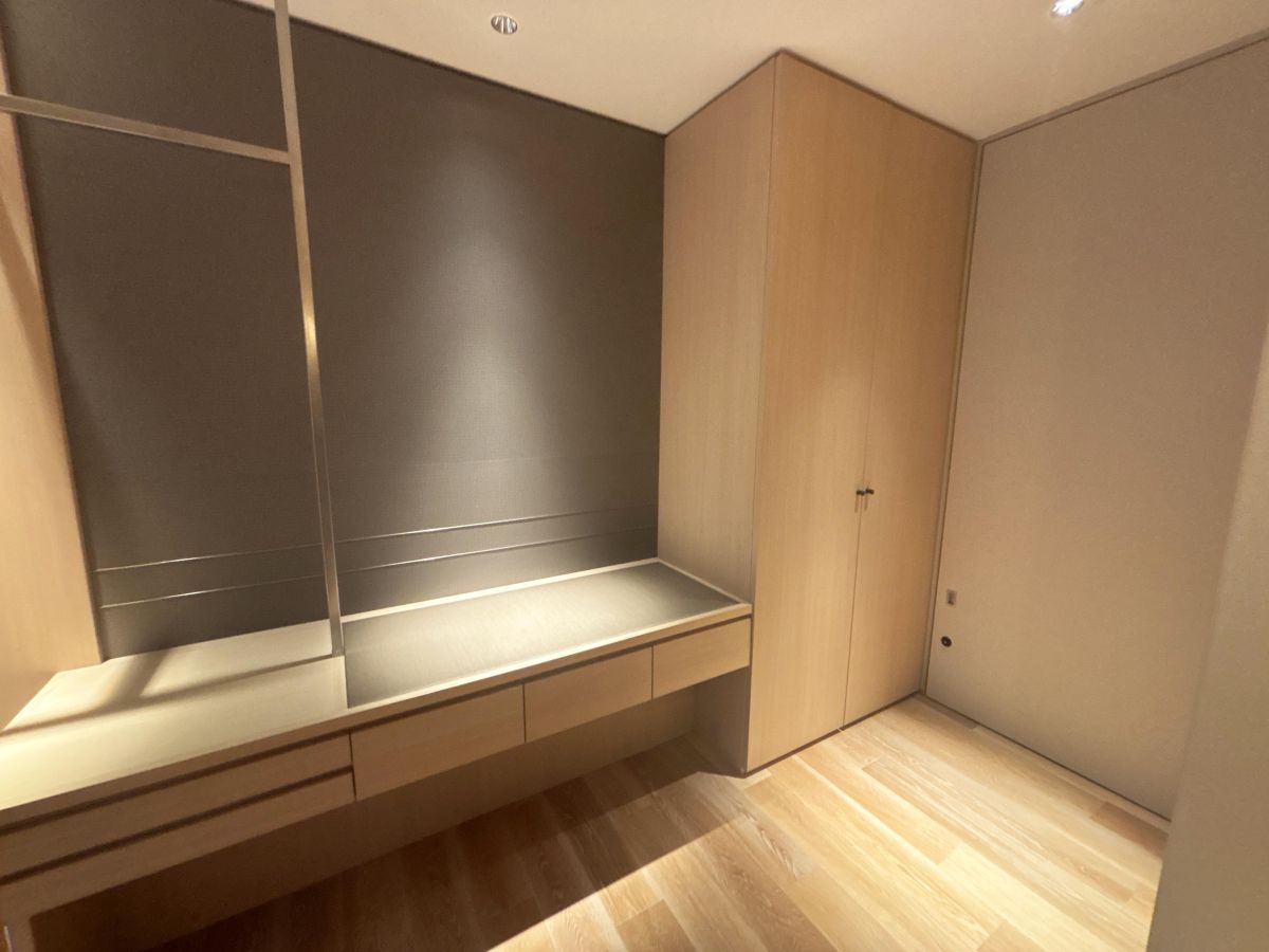 ダイニングルームに続く廊下にはスーツケースが置けるスペースが。大きなクローゼットも用意されているので、荷物や洋服が多いときでも快適です。
