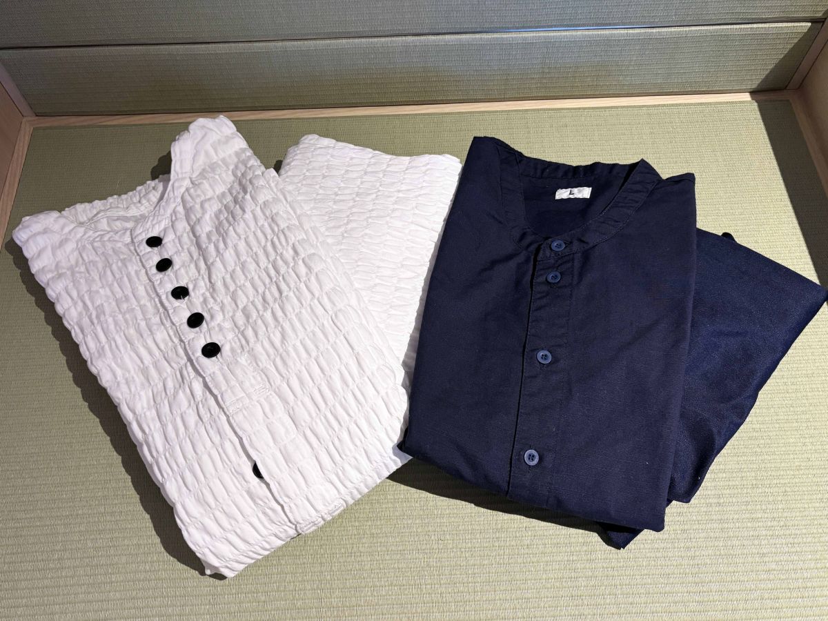 引き出しには、館内着とパジャマが。クローゼットには羽織も用意されています。