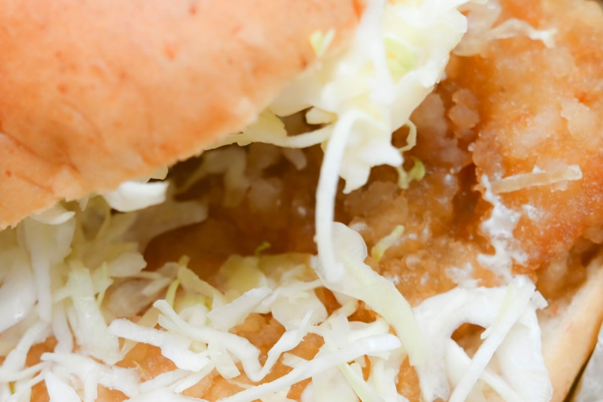 揚げたての鶏肉は、生姜の風味がほどよくきいていて、とってもおいしい! さらに特製マヨソースと一緒に食べることで、まろやかな甘みが加わって味に変化が生まれます。ザクザク食感とジューシーな肉汁、マヨソースのコクが口の中で調和して、まさに完成された鶏竜田バーガーといった印象です。