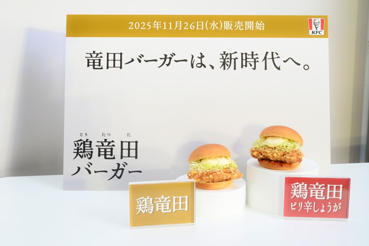 本気で挑んだ竜田バーガーがついに登場! ケンタッキーフライドチキンでは、8年の歳月をかけて開発した新商品「ケンタの鶏竜田バーガー」と「ケンタの鶏竜田バーガーピリ辛しょうが」の2種を、2025年11月26日(水)から数量限定で販売開始します。今回は発売に先駆けて、チキン専門店の集大成ともいえる注目の新商品2種を実食レポート! 気になるカロリーや値段、おすすめポイントもご紹介します。