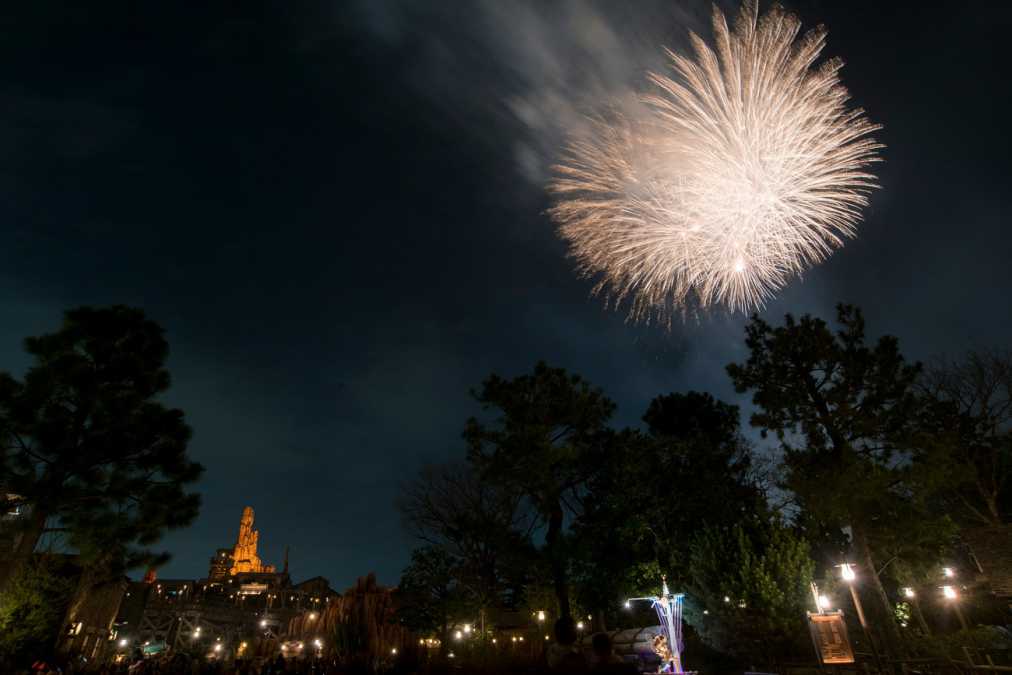 パークの定番、花火も「ブランニュードリーム」としてリニューアル。祝祭感あふれる色とりどりの鮮やかな花火に。パークのどこでも見えるので、最後に乗りたいアトラクションのそばで見て。