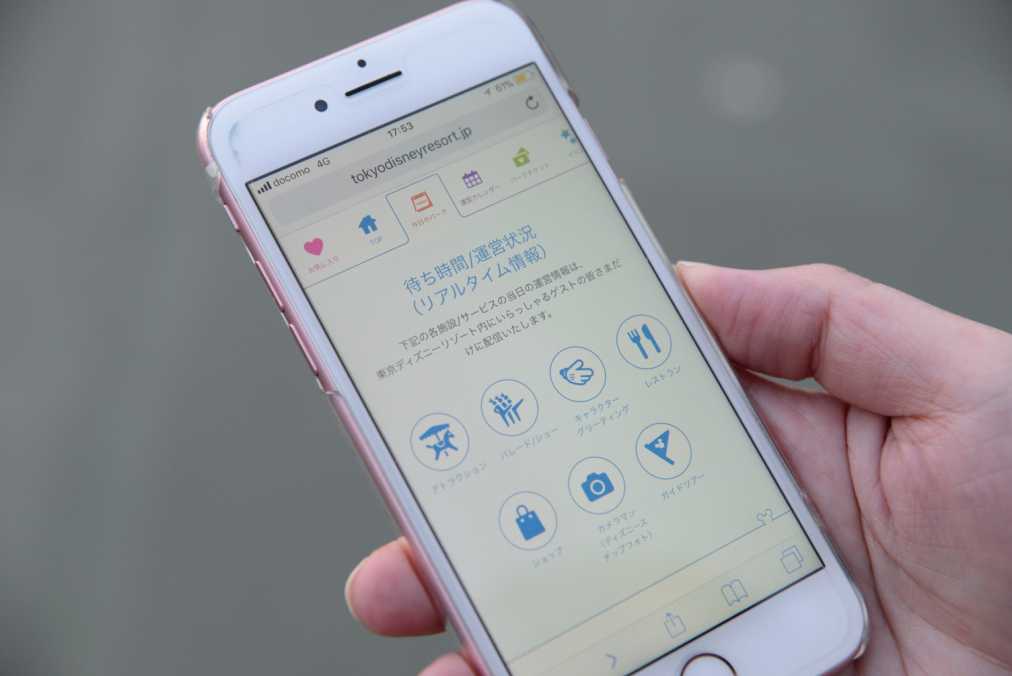 1.あらかじめスマホサイトのアプリを入れておくと便利。当日のアトラクション待ち時間やFPの残などが分かります。2018年夏にはショッピング機能などがついた新しいアプリも登場予定!