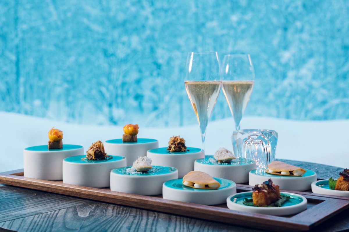 食前酒とおつまみを渓流沿いのテラスで楽しむ美食体験「渓流アペリティフ」に始まり、素材を生かした青森らしい味わいのディナコースが楽しめます。