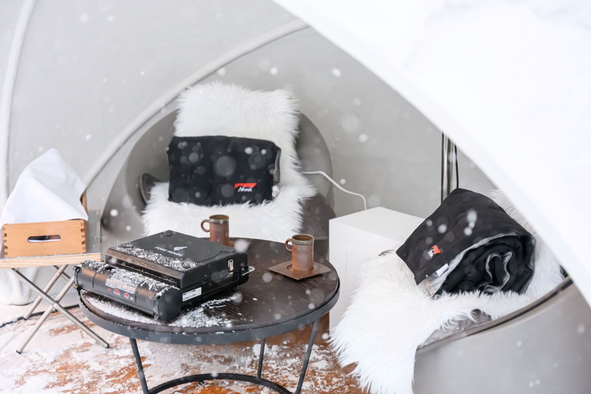 かまくらの中は温かく、電気毛布やヒーター、ブランケットが完備されていて至れり尽くせり。