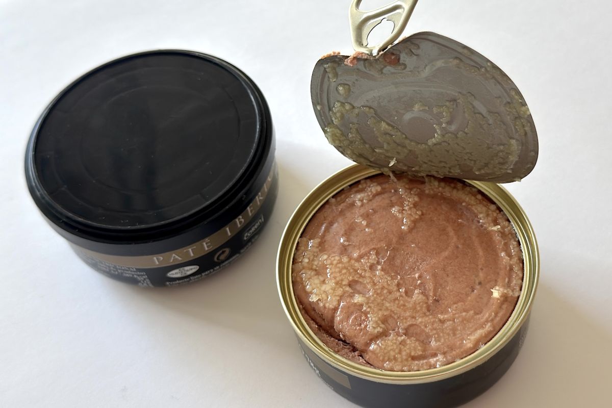 黒い蓋を取り、アルミ製プルトップの内蓋を開けると、ほんのりピンク色のパテが登場します。