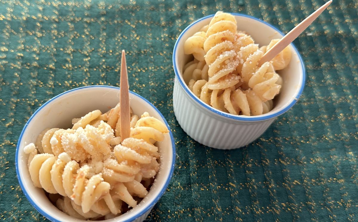 ショートパスタに絡めて、ピンチョス風のおつまみにしてみました。