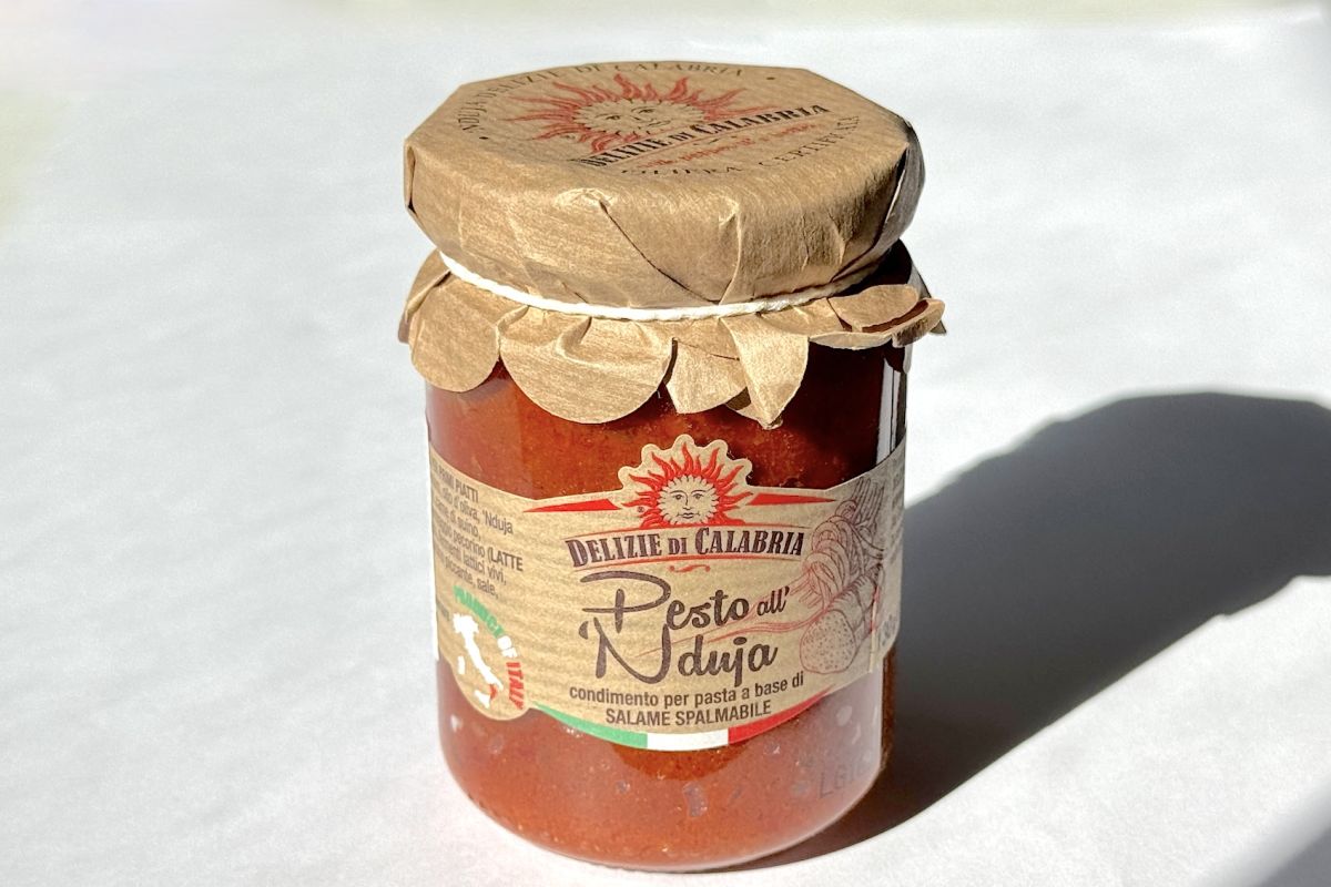 サラミ入りのピリ辛ペースト!「デリツィエカラブリア ンドゥーヤペースト」853円