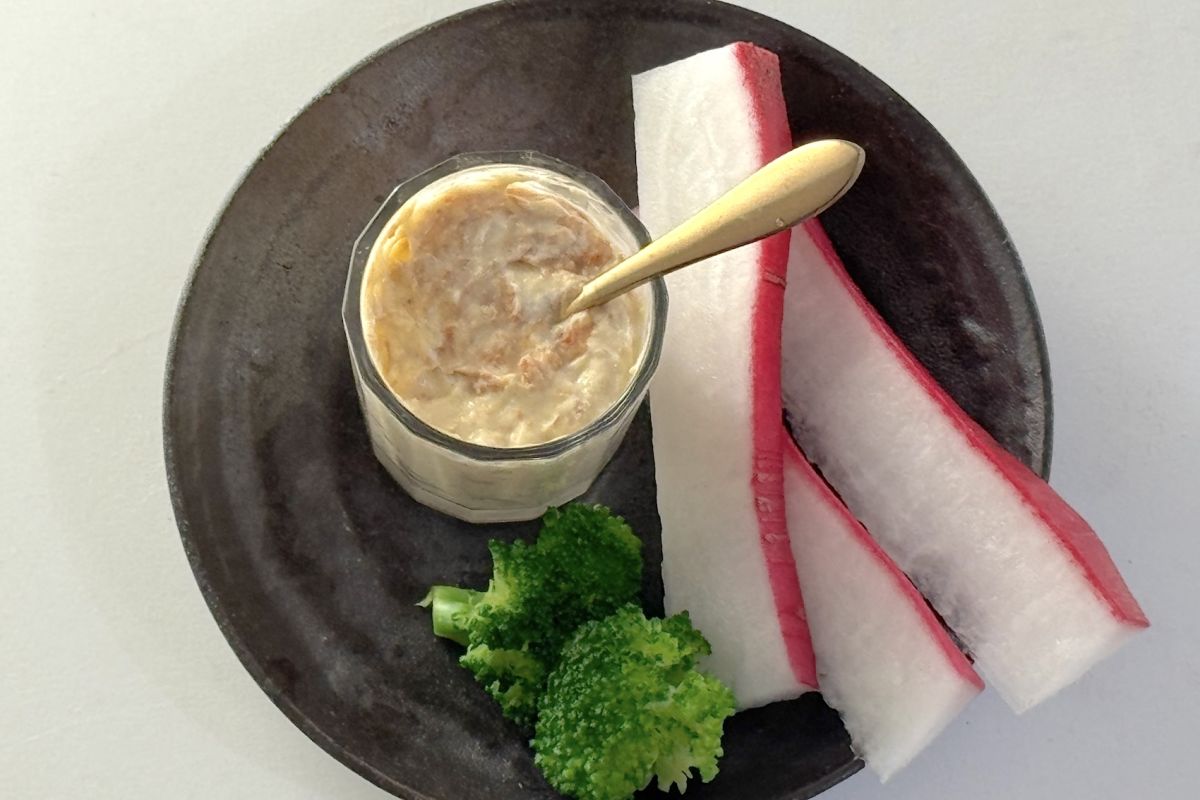 「オリジナル 紅ズワイ蟹のクリームディップ」にマヨネーズやクリームチーズを混ぜて、かさ増しして、野菜スティックに付けるディップにしてみました。