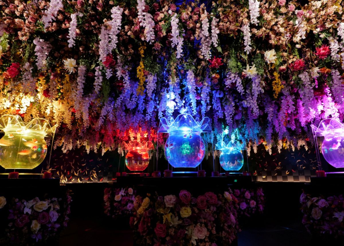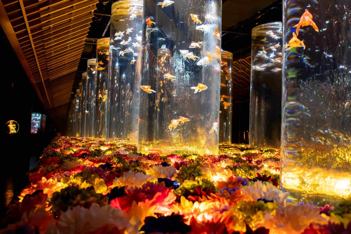 金魚×花のコラボレーションを鮮やかに演出した「Flower Aquarium Gala ~金魚と花の彩展~」。非現実的な幻想世界が広がる「アートアクアリウム美術館 GINZA」で、忘れられない冬の思い出を作りませんか?。