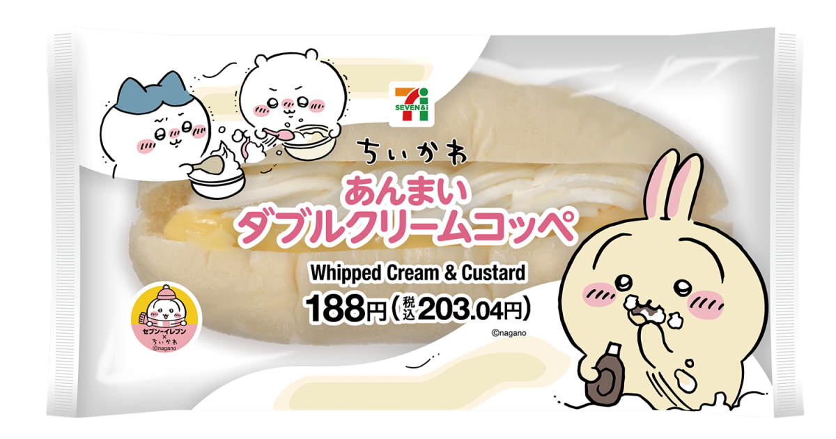ハチワレが楽しみにしていたダブルクリームコッペパンが登場! ふわふわのコッペパンに、ホイップクリームとカスタードクリームがぎっしり詰まっています。