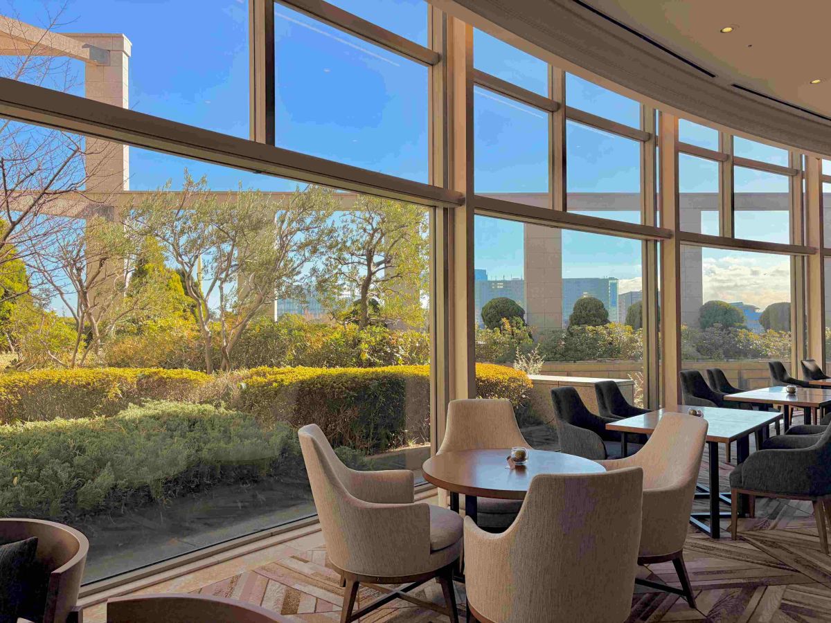 ご紹介したアフタヌーンティーは吹き抜けのロビーフロアにある「The Lobby Cafe」で堪能することができます。この日は天気が良かったので、やさしい光が入り込む空間に癒やされました…! 開放感あふれる大きな窓がくつろぎを演出します。