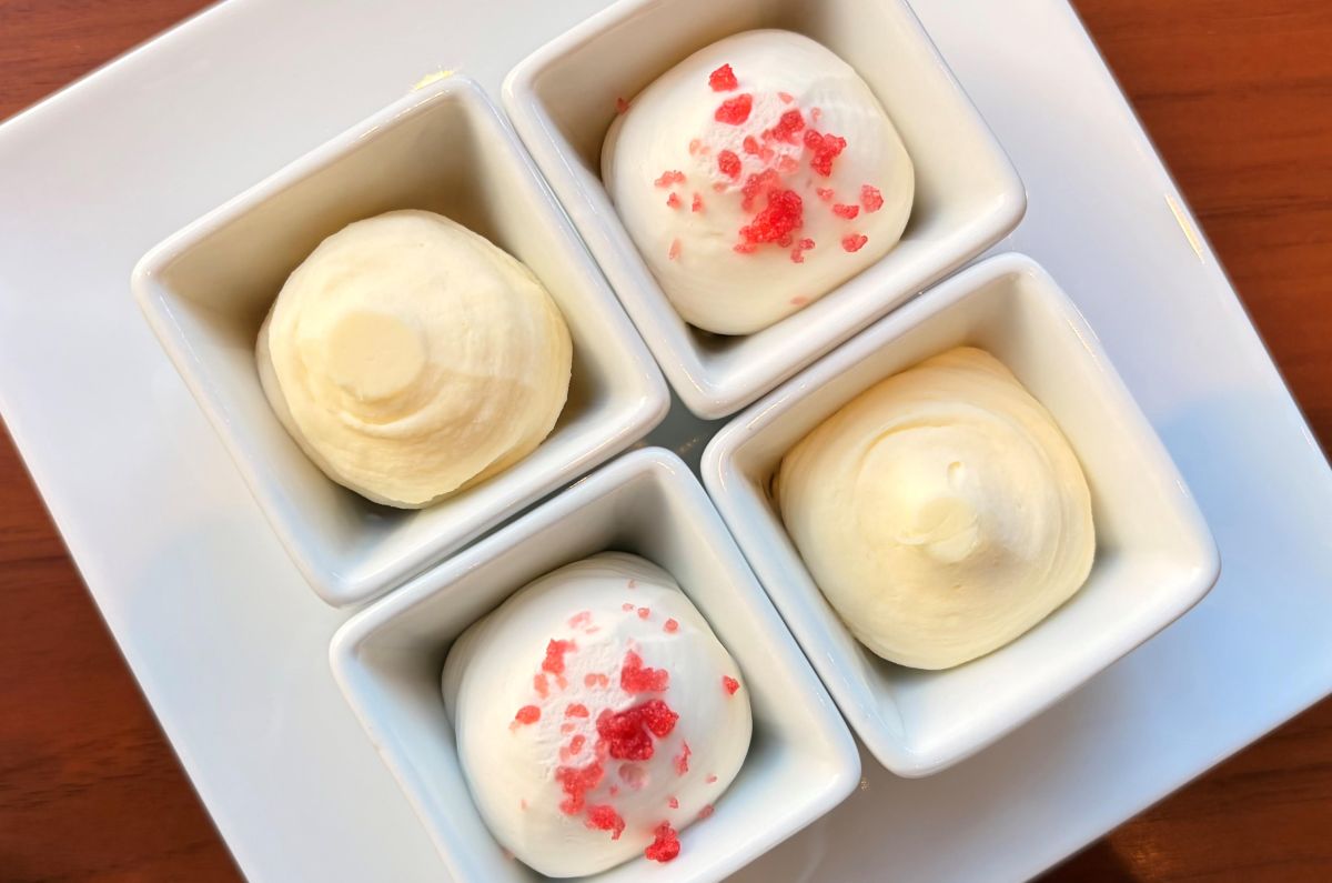 そして「いちごのスコーン」には「クロテッドクリーム&練乳クリーム」をつけてみて。練乳クリームにはいちごのフリーズドライがあしらわれていて、かわいらしい見た目になっています。どちらも優しい甘さなのでいちごのスコーンと相性バツグンです…!