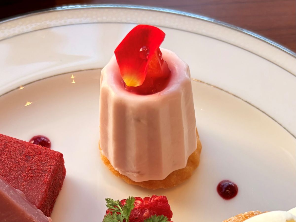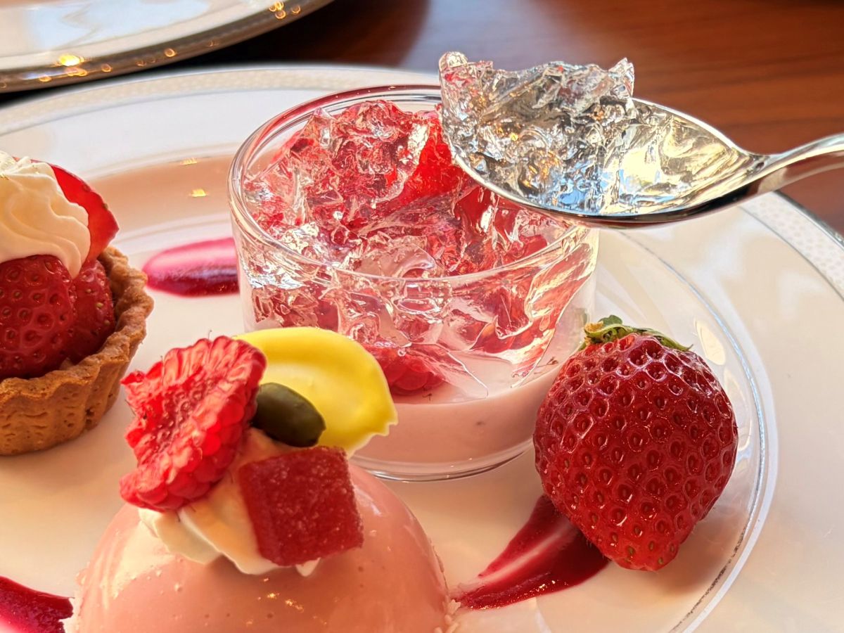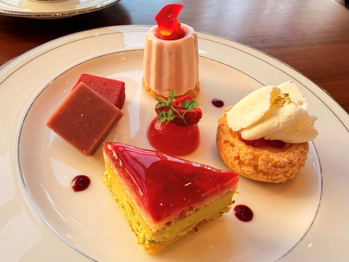 陽の光に照らされて輝くスイーツの数々は『赤い宝石』という名そのもの。飾り付けされた赤とピンクのリボンもかわいらしいですね。1人1台盛り付けられているのも、ご褒美感があってうれしい。