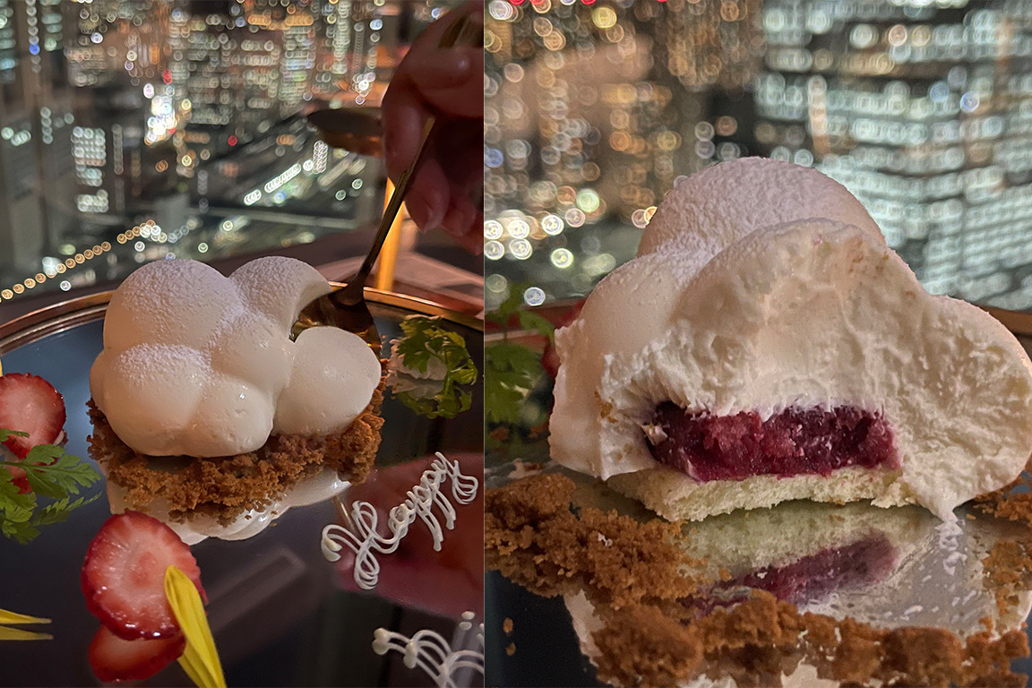 コースの最後には、お店のコンセプトでもある天空モチーフにちなんだ、雲のような形が可愛い「シグニチャークラウドケーキ」が。かわいらしいビジュアルにテンションも上がります。