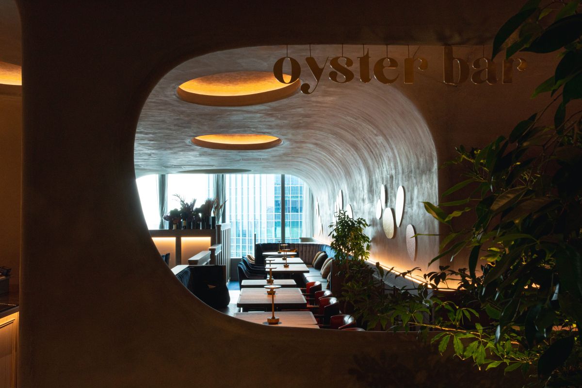 JR高輪ゲートウェイ駅に誕生した新施設「ニュウマン高輪」の28階にある、天空の洞窟をコンセプトにしたレストラン「そらとさかなとオイスター 高輪 Wharf」。ここでは地上150mの景色を一望しながら、国内や海外から仕入れた新鮮な魚介をコース料理で楽しむことができます。