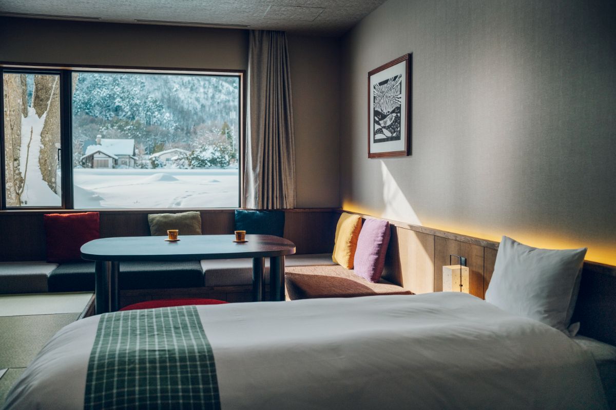 「界 アルプス」宿泊者専用のラウンジもある、「エイブル白馬五竜スキー場」