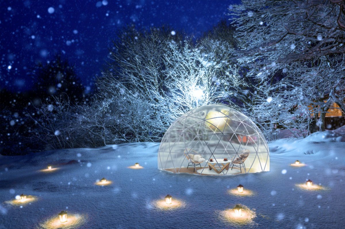 夕方から夜にかけて、時間の経過とともに変わる幻想的で美しい雪景色に癒やされながら湯浴みが楽しめます。昼間は見ることができない雪の絶景に、思わずうっとり。