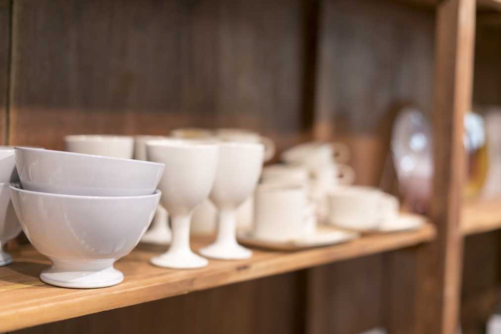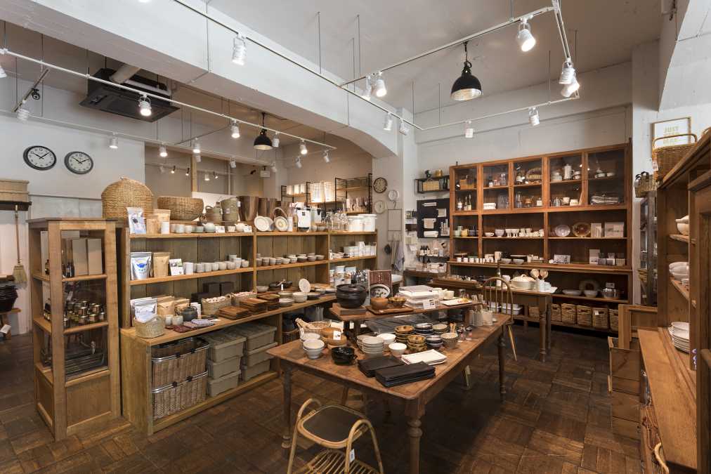 1階は食器や装飾小物を主に販売しています。海外製のタオルやランチョンマット、オリジナルの珈琲、掃除用具まであり、品揃え豊富です。