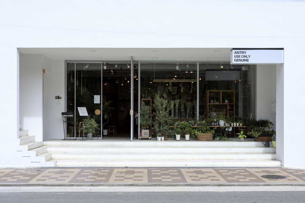 真っ白な壁にグリーンの観葉植物が映える外観。スタイリッシュな雰囲気で、足を踏み入れる前からセンスの高さを感じられます。