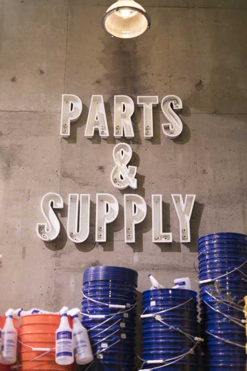 階段を登った2階は、DIYパーツを取りそろえたフロアになっています。普通の生活雑貨店では置いていない、表札やドアノブ、手すりやバケツ…手軽なパーツからプロ仕様のものまでさまざまなパーツが並んでいます。