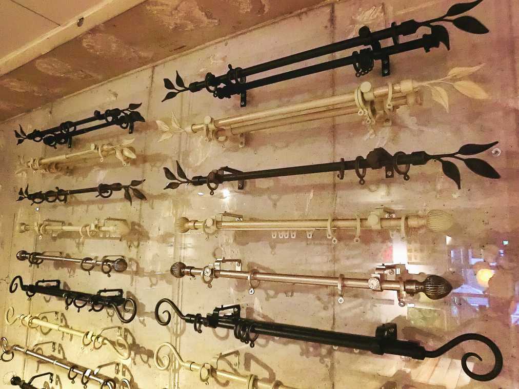 もともとカーテンフックの製造会社として創業した友安製作所。店内にはオリジナルの鉄製カーテンレールがズラリと展示してあります。