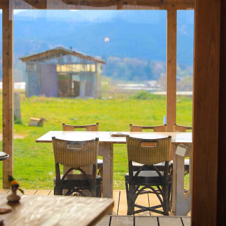 店内に居ながらでも外の景色は十二分に楽しめるので、たとえ雨が降ったとしても、自然の恵みと捉えて楽しみましょう!