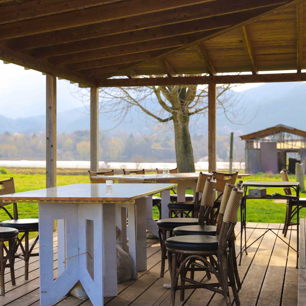 天気の良い日は、自然にふれられる外のテラス席がぜひおすすめ!緑の香りや風の音。ここだからこそ楽しめるお外ごはんを、身体を“うん~っ”と伸ばしていただくことができますよ。