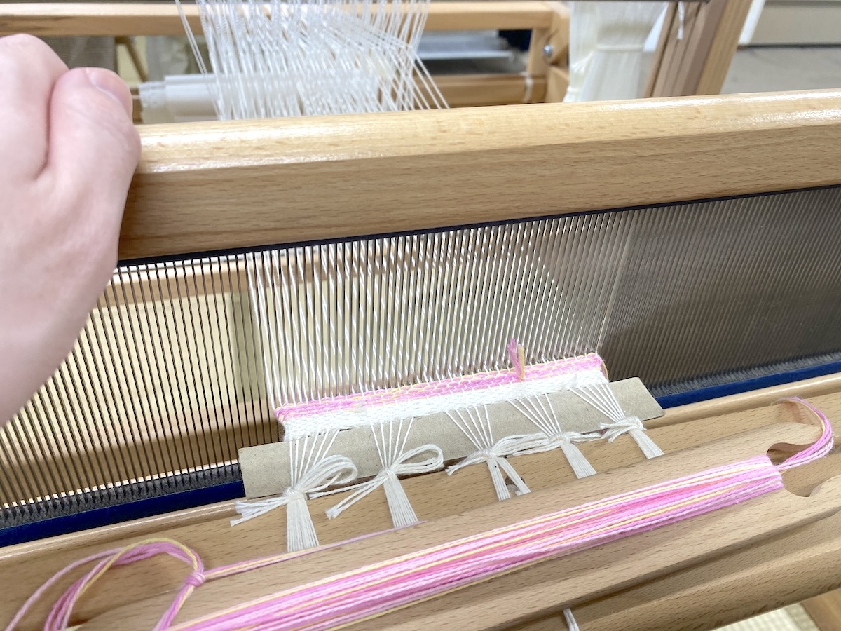 実際に織り機でお守りの生地を作っていきます。一見すると複雑で難しそうな織り機ですが、意外と簡単なので初心者でも安心して楽しめます。時間を忘れて作業に没頭♪