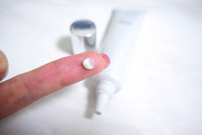 この部分用下地はテカりを防いでくれる効果もあるんです。過剰な皮脂分泌に対応したスキンケア成分を配合しているものなんだとか。肌に乗せると、するするとクリームからパウダー状に変化!