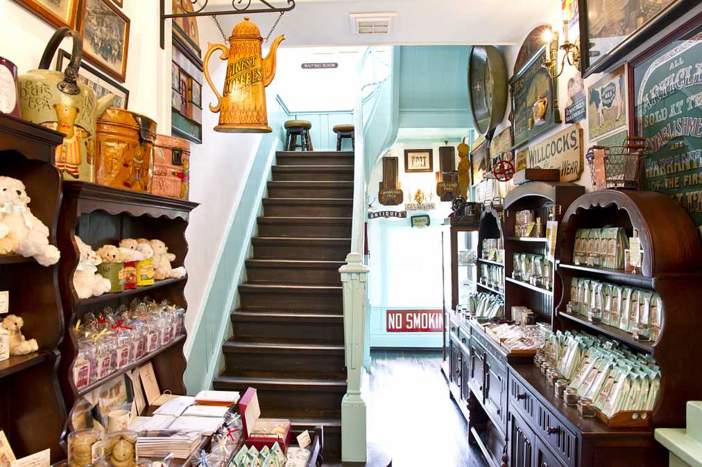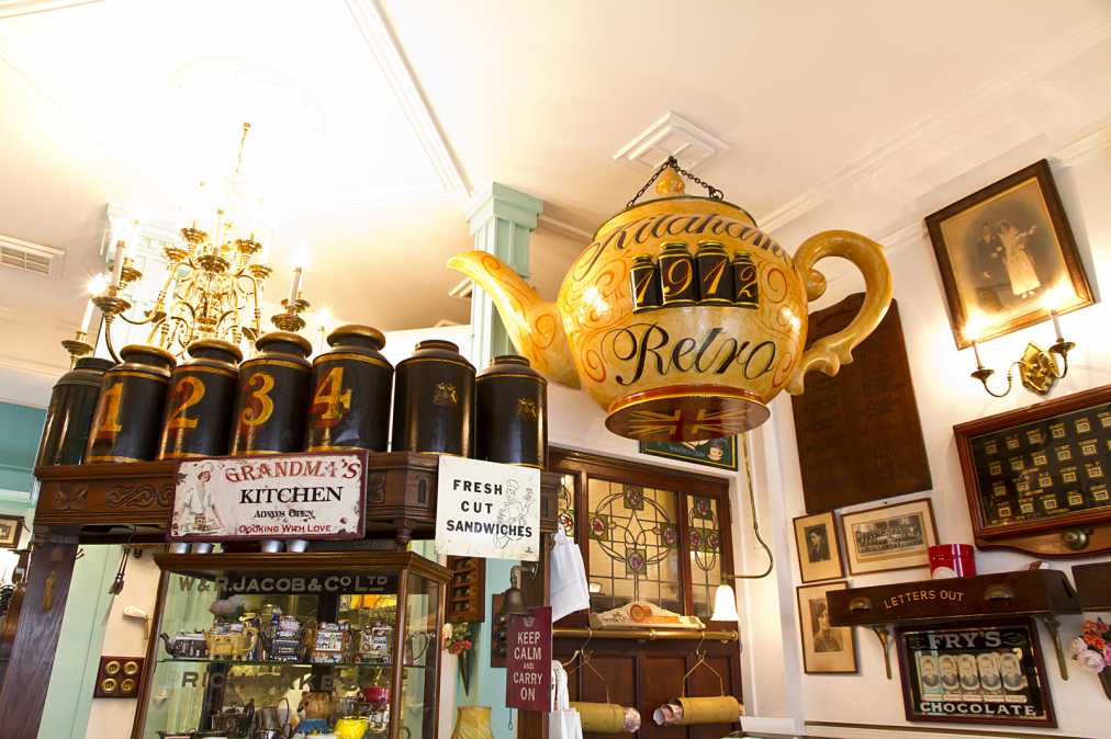1階のショップでは紅茶やイギリスの食器やインテリア雑貨がかわいくディスプレイされていて、まるで気分は不思議の国のアリス。
