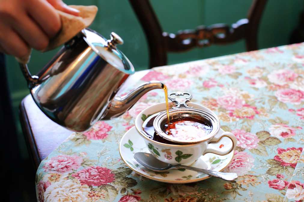 レトロ建築が今なお残る中之島エリア。そのひとつが国の登録有形文化財のレンガ造りのこの建物です。目印は金色のキュートなティポットの看板。1階がショップ、2階がサロンスペースになっています。