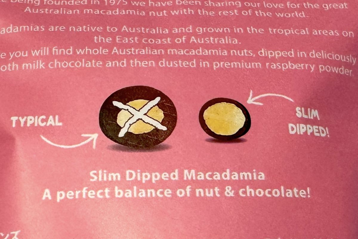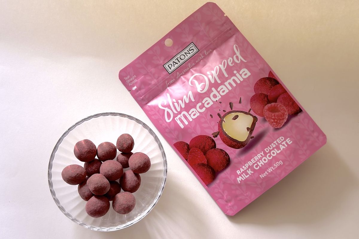 マカダミアナッツが主役!「ペイトンズ スリムディップ マカダミアチョコレート ラズベリー」 462円