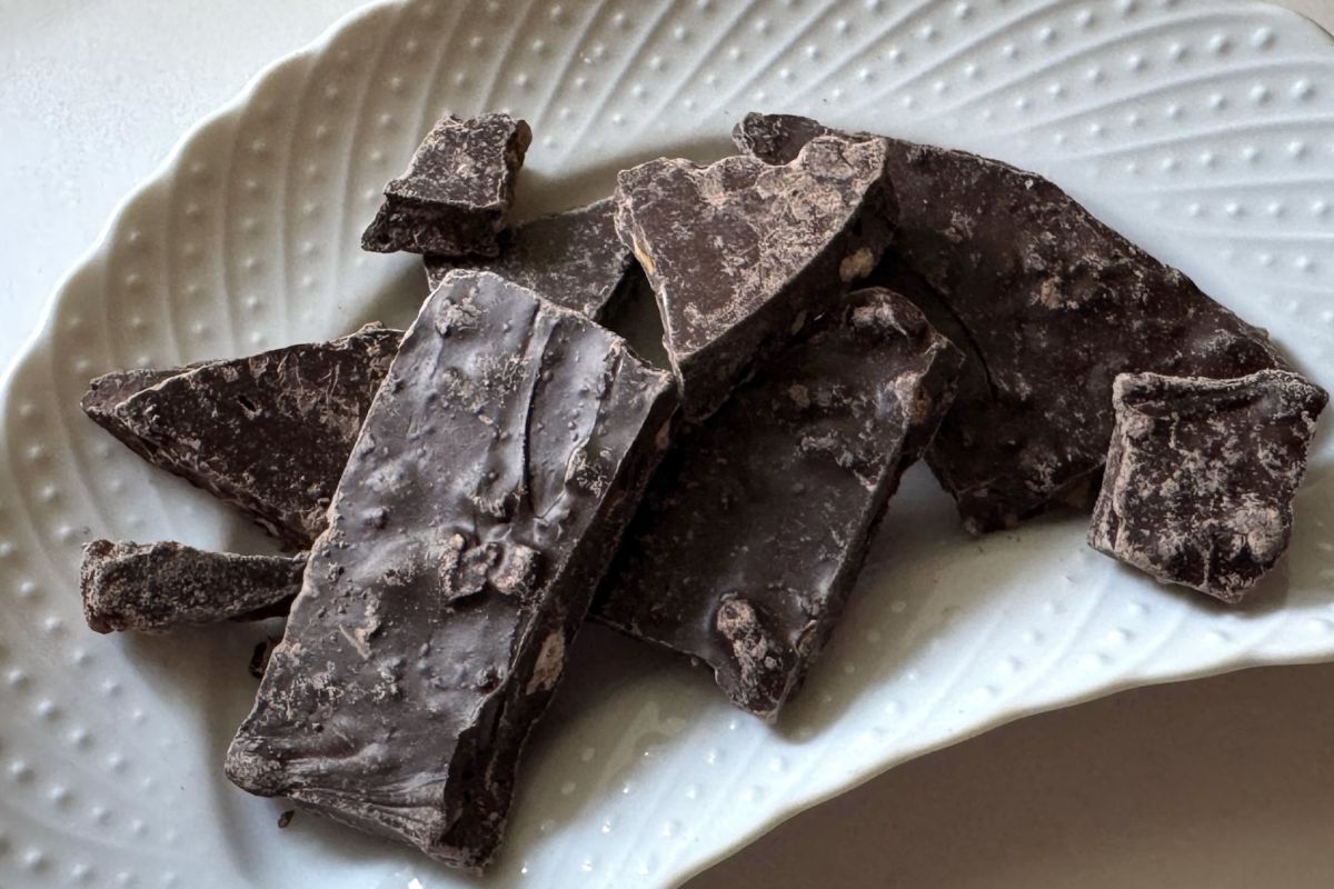 「ザ・プレッツェル ダークチョコレートシーソルトプレッツェルバーク」75gは、ダークチョコレートに砕いたプレッツェルとシーソルトを練り込んだアメリカ産のチョコレート。