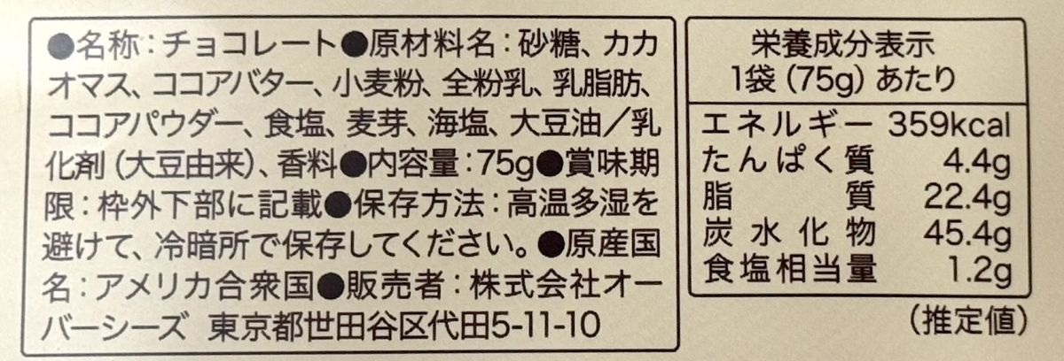 1袋当たりのカロリーは359kcal。容量がたっぷりなので、少しずつ楽しみながら食べるのに向いていますね。